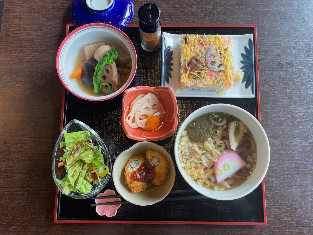 | Sakura-no-chaya. Set lunch with lotus root noodles. ¥1650, $11.22. |